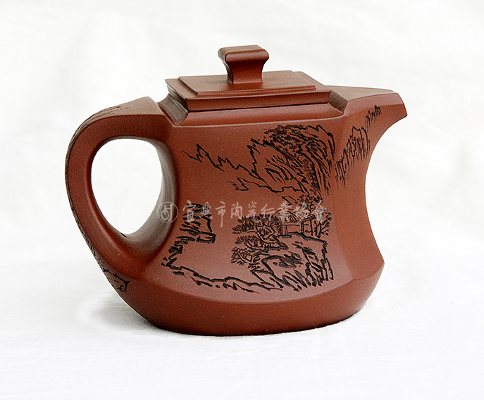 作品以紫砂手工“打片镶接法”成型,工艺精到。