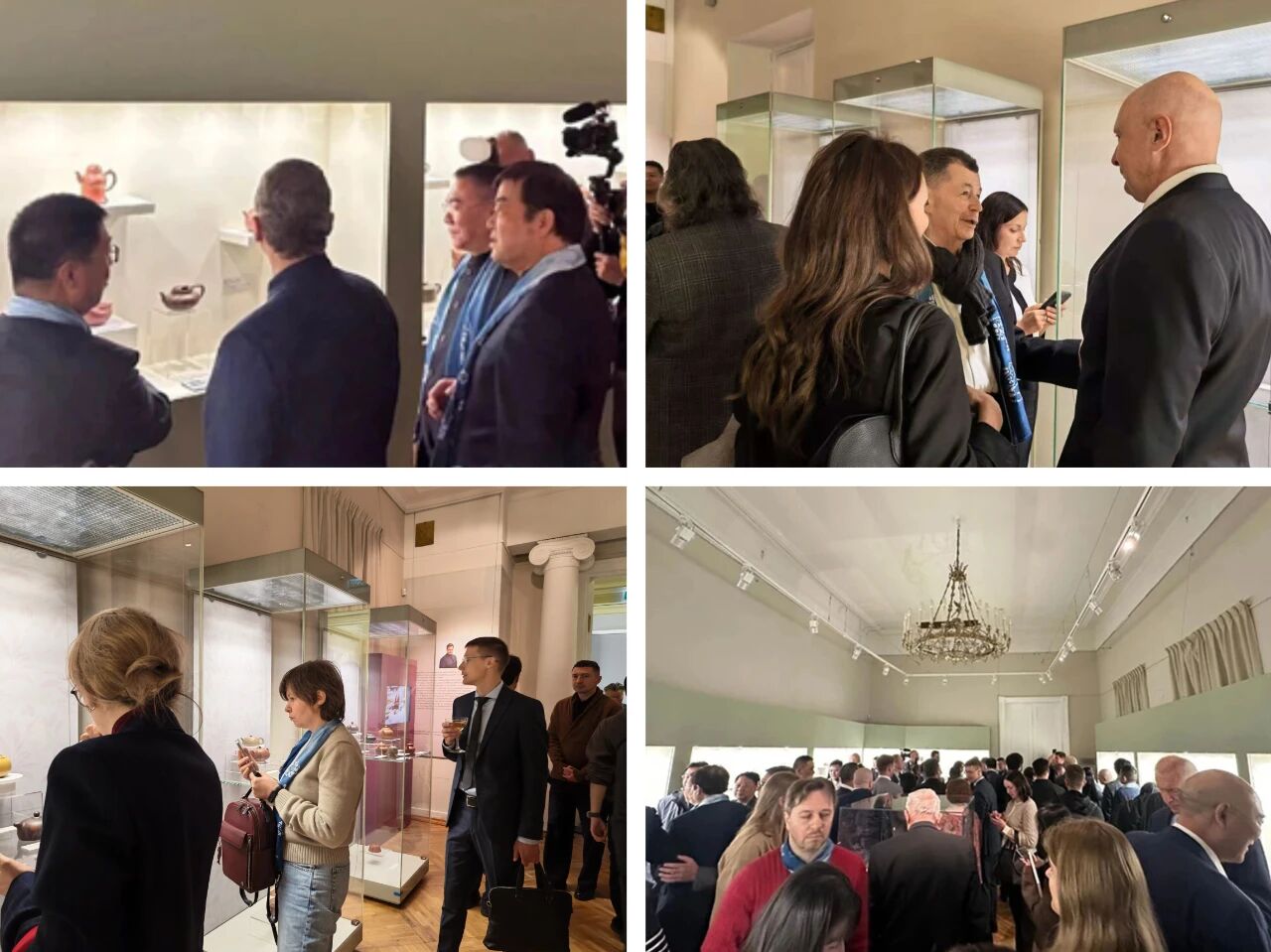 当地时间9月24日,应俄罗斯文化部邀请,由宜兴市人民政府指导、宜兴市陶瓷行业协会主办的“陶都风——中国宜兴紫砂俄罗斯展”在莫斯科国立东方艺术博物馆隆重开幕,并促成俄罗斯国立东方艺术博物馆永久设立“中国紫砂专厅”。